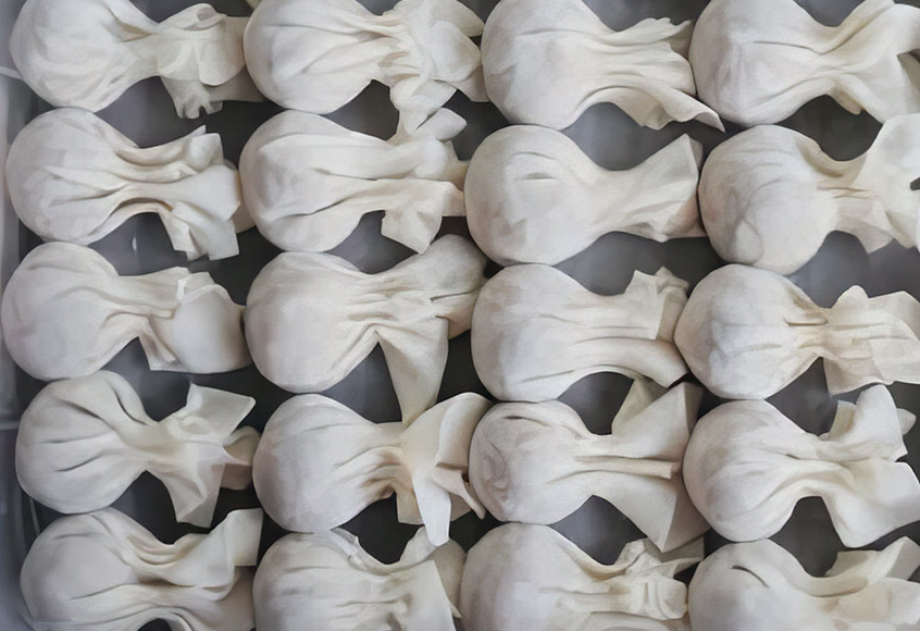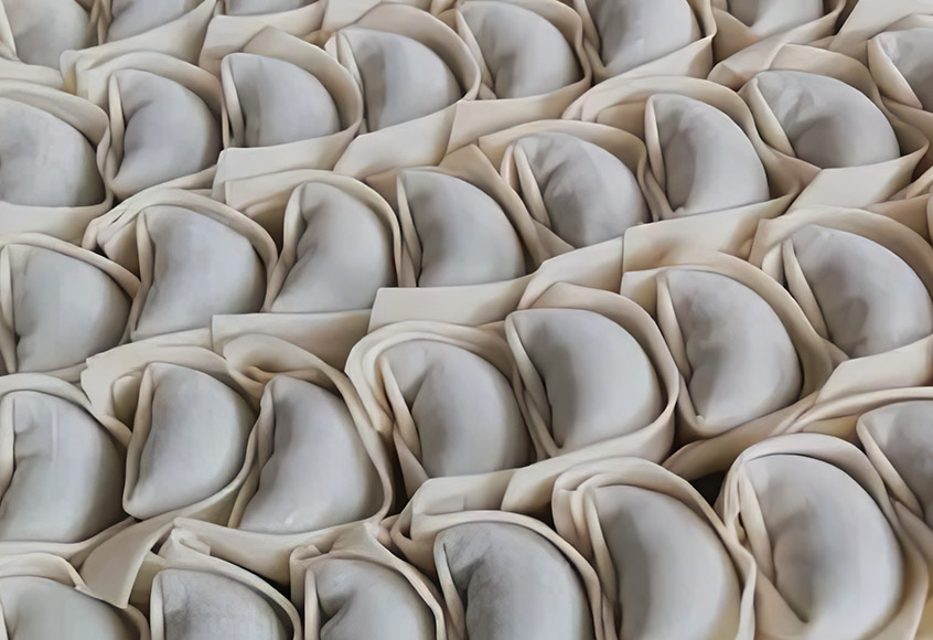 pangsit berbagai bentuk dan isian dengan kecepatan tinggi.